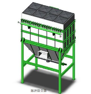 含塵氣流從進氣口進入箱體后,部分沉降,輕微粉塵浮動時被濾袋阻留,凈化空氣透過濾袋,經文氏管進入上箱體,從出氣口排出。積附在濾袋外壁的粉塵不斷增加,當阻力在限定的范圍內(一般為80-120毫米水柱),就要清除積附的濾袋外壁的粉塵,清灰是由控制器順序觸發各控制閥,使氣包內的壓縮空氣由噴吹管孔噴出(一次風),通過文氏管誘導數倍于一次風的周圍空氣(二次風)進入濾袋,使濾袋在一瞬間急劇膨脹并伴隨著氣流的反作風,抖落粉塵,被抖落的粉塵落入灰門經排灰閥排出機體。